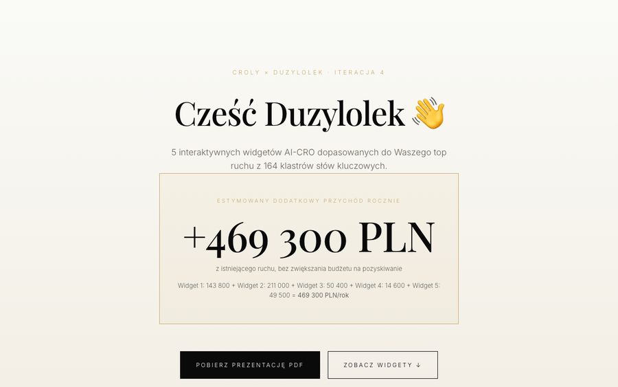 5 widgetów AI-CRO przygotowanych dla duzylolek.pl
